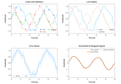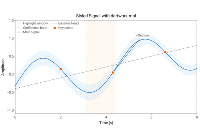Fundamental plotting examples demonstrating core dartwork-mpl features. These examples show basic line plots, scatter plots, and essential styling techniques.
